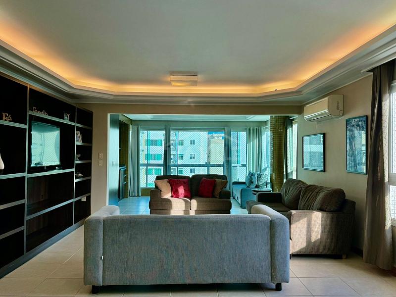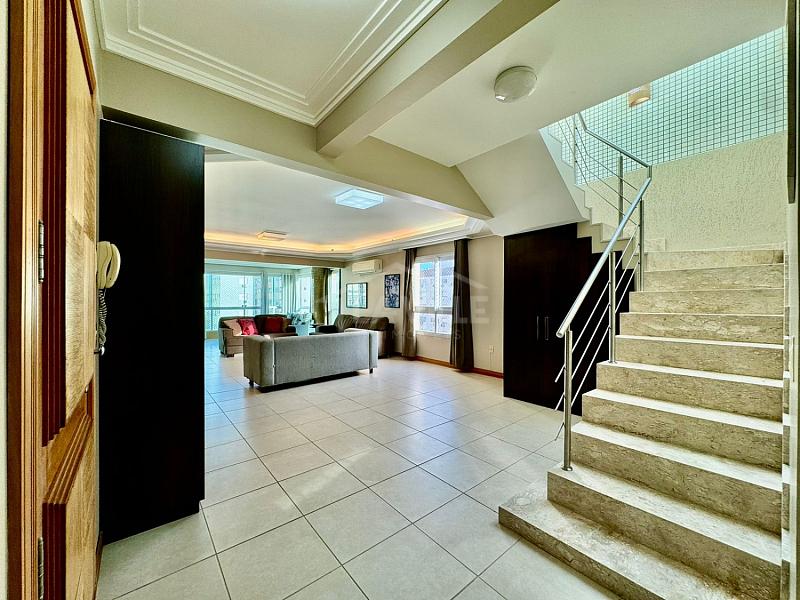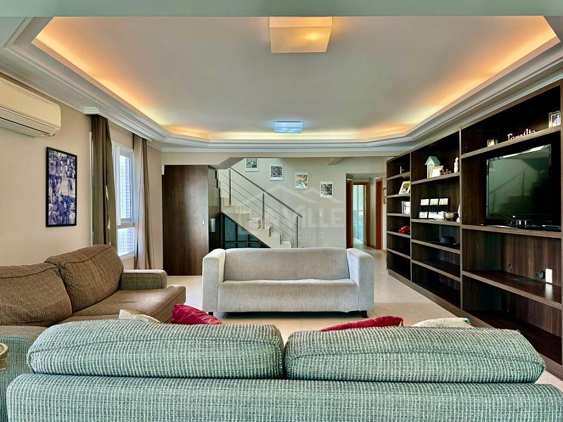 Parte de baixo: 02 dormitórios (02 suítes), banheiro social, ampla sala de estar e sacada integrada fechada.