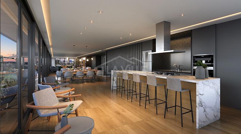 - Espaço convívio e coworking, roftop, espaço gourmet, hall de entrada, guarita blindada, academia, piscina, churrasqueira com forno de pizza.