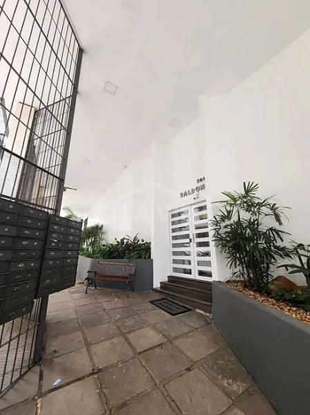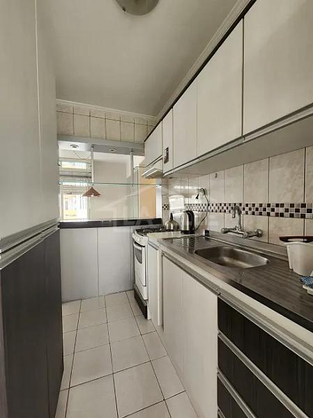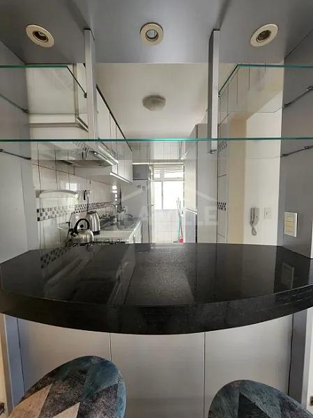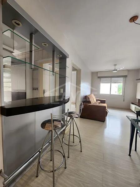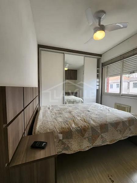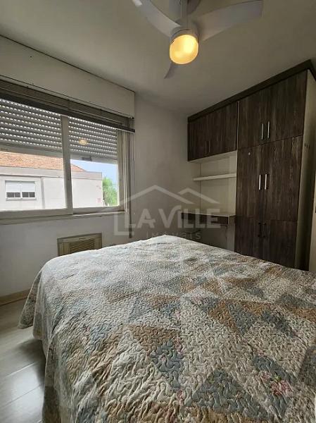 -mobiliado, de 1 dormitório, sala e cozinha amplas, vista de frente, lateral e fundos. Possui vaga de garagem, muito bem localizado na Rua Santo Antonio, 500.