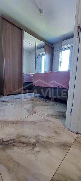 Apartamento com 2 quartos, banheiro, sala, cozinha, lavanderia, porcelanato, sacada fechada com vidros e churrasqueira, vaga de garagem no estacionamento, quadra de esportes, salão de festas e praça infantil.