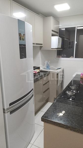 Apartamento com 2 quartos, banheiro, sala, cozinha, lavanderia, porcelanato, sacada fechada com vidros e churrasqueira, vaga de garagem no estacionamento, quadra de esportes, salão de festas e praça infantil.