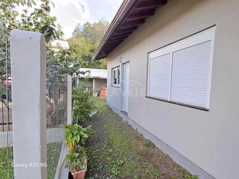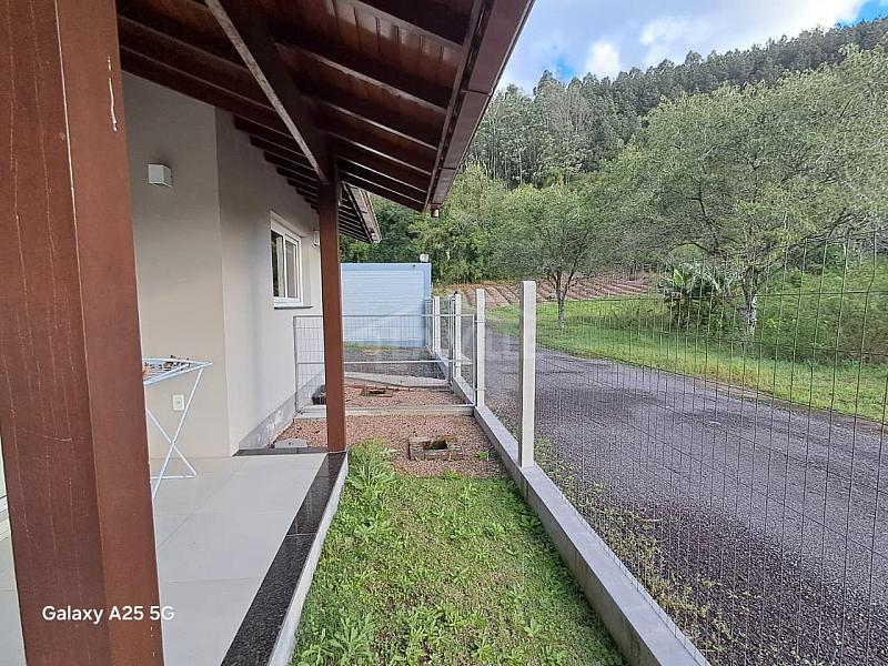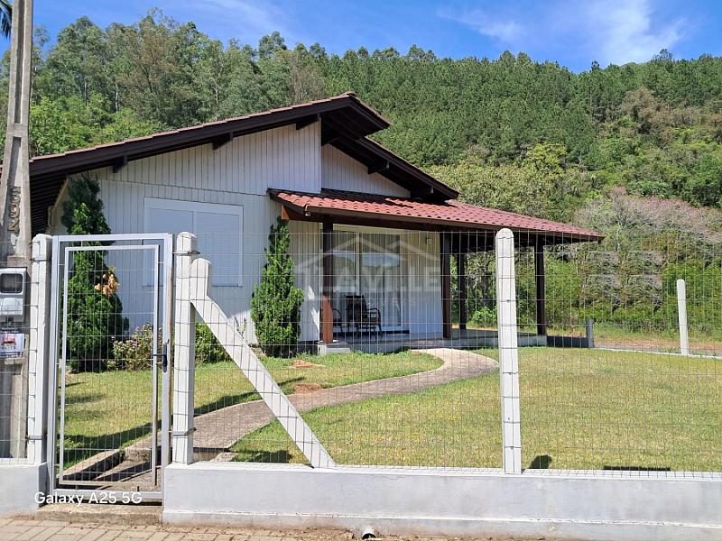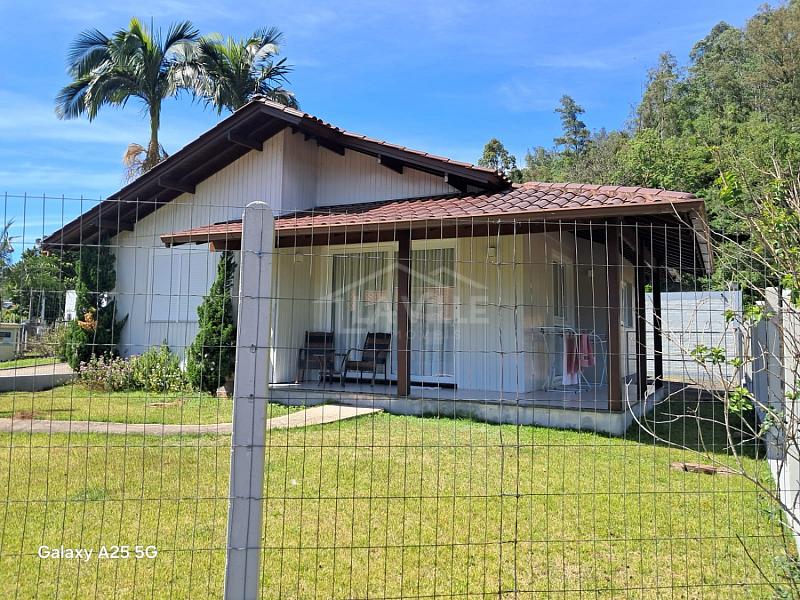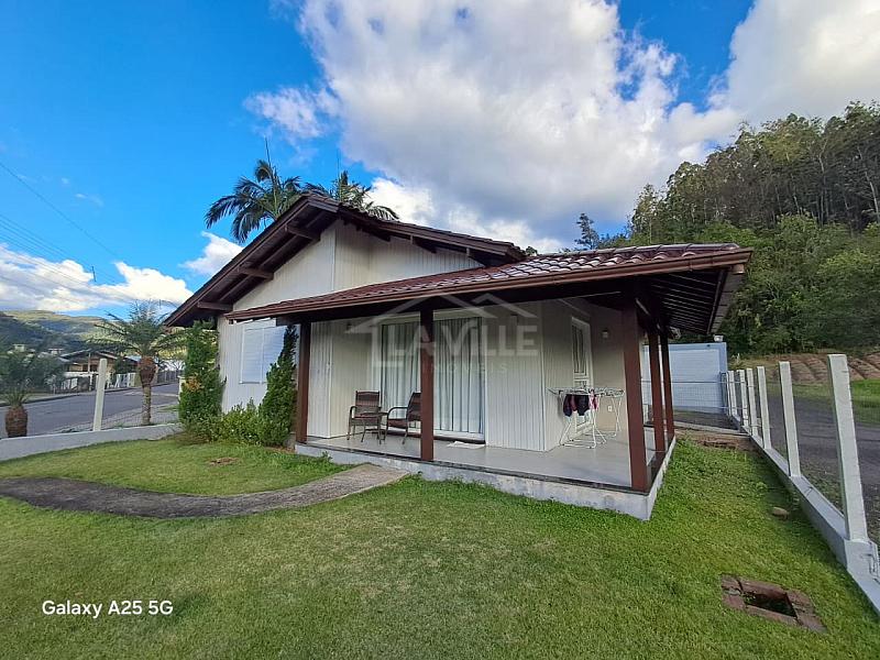 Casa com 2 quartos, 1 banheiro e sala. Semi imobiliada com: cozinha sob medida, fogão a lenha, mesa com 6 cadeiras, armário de sala+painel de TV, 1 poltrona, 3 roupeiros e 2 ar condicionados