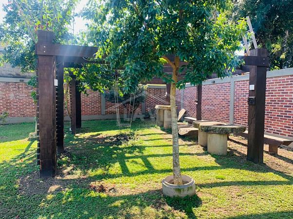 - Casa de alvenaria, janelas pvc e madeira, 4 quartos, Churrasqueira, 3 banheiros, Garagem p/ 2 carros, Quiosque com piscina, Portão eletrônico, Pergolado