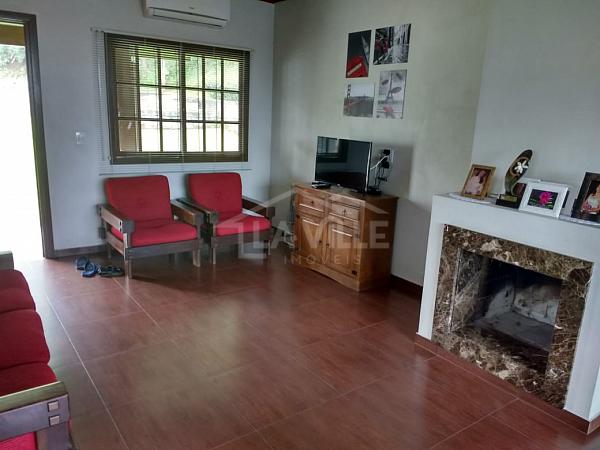 3 Quartos, sala, cozinha, 2 banheiros, porão, churrasqueira, lareira