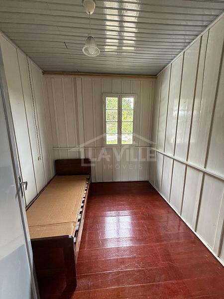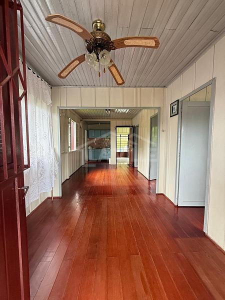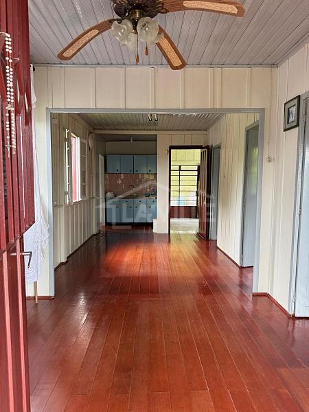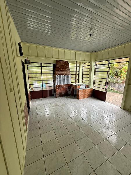 Casa com 3 quartos, 1 banheiro, sala, cozinha e pátio.