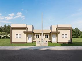 Casa reformada com dois quartos, banheiro, sala, cozinha, lavanderia, garagem, área na frente e nos fundos.