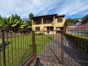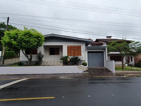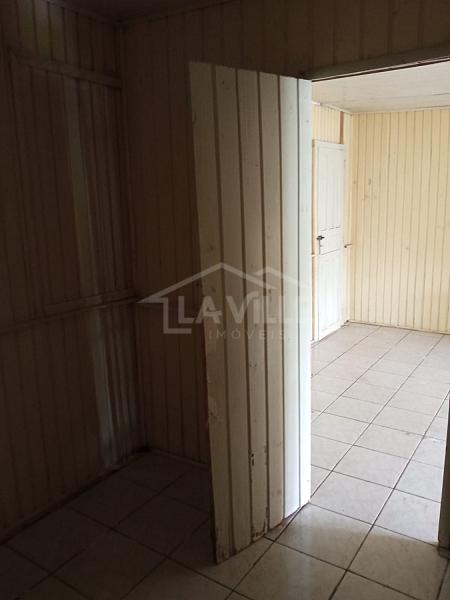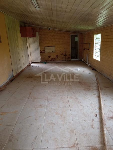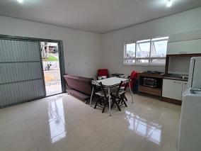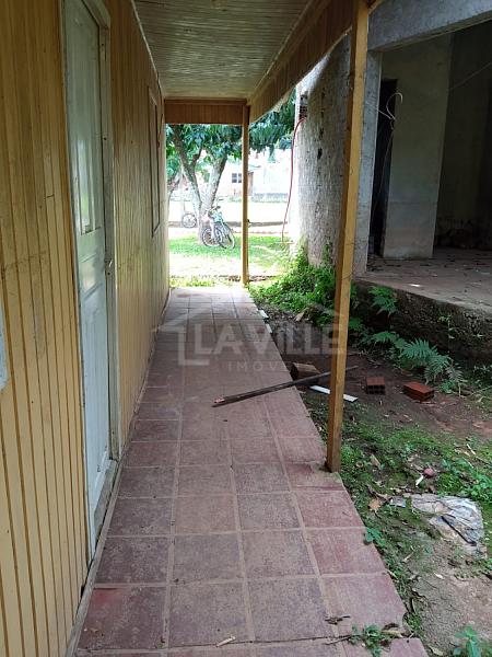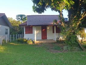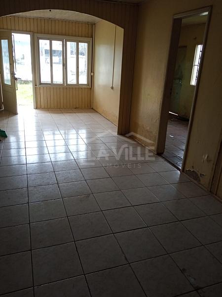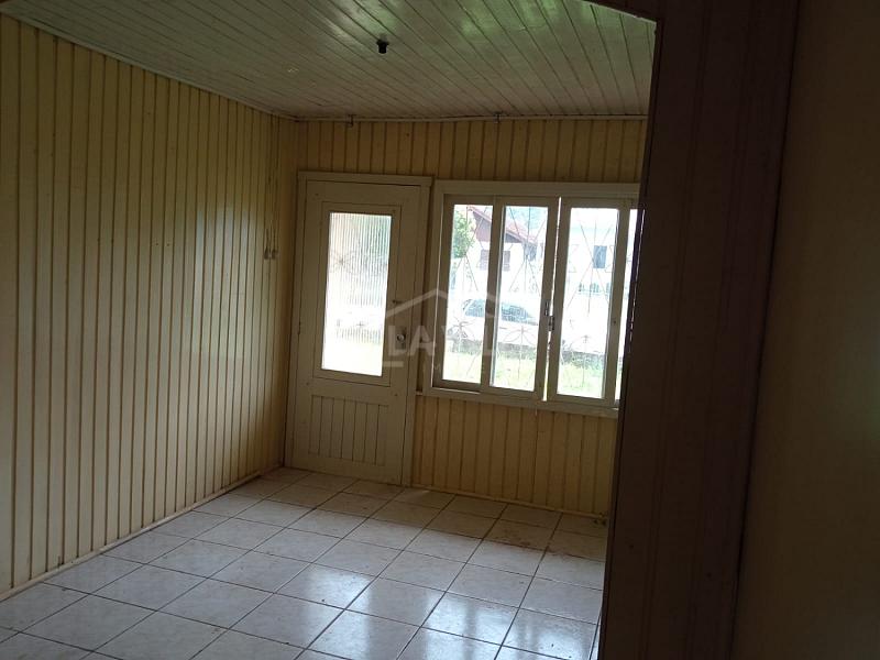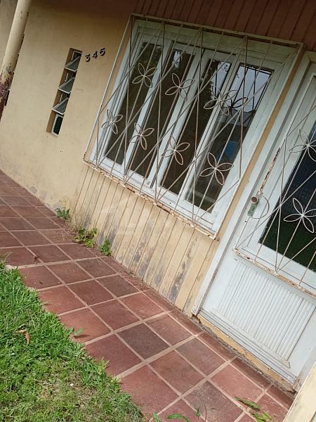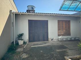Casa com 3 quartos (sendo 1 maior e os outros 2 menores), 2 banheiros, 2 salas, 1 cozinha e com áreas nos fundos e na frente.