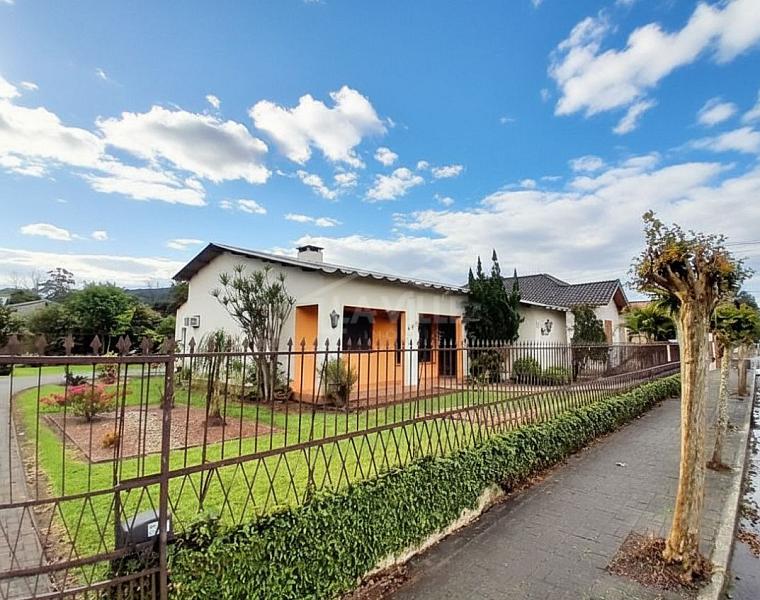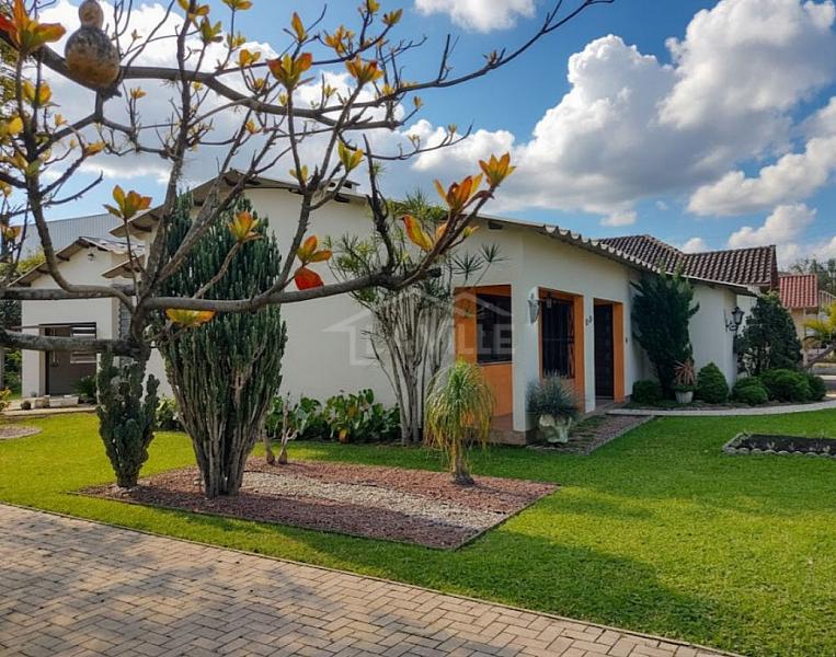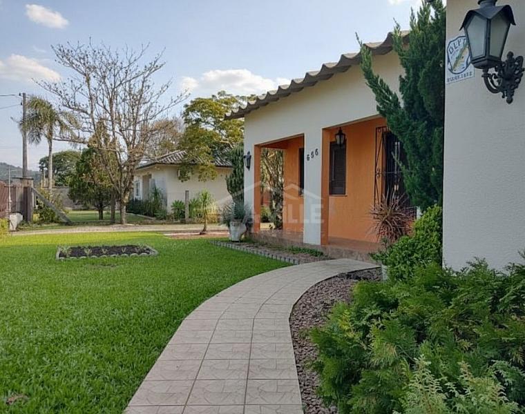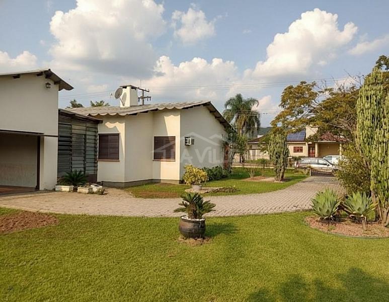 Casa com 3 quartos (1 suíte), 2 banheiros, sala, cozinha com despensa, lareira, lavanderia, churrasqueira e garagem.