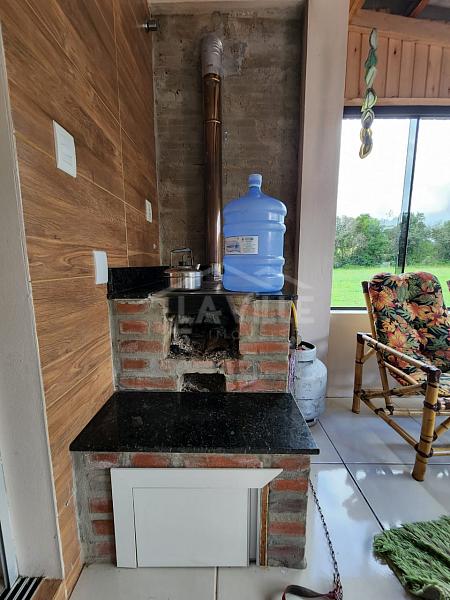 3 quartos, sala, cozinha, 2 banheiros, fogão campeiro, churrasqueira, quiosque e piscina