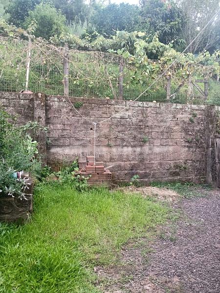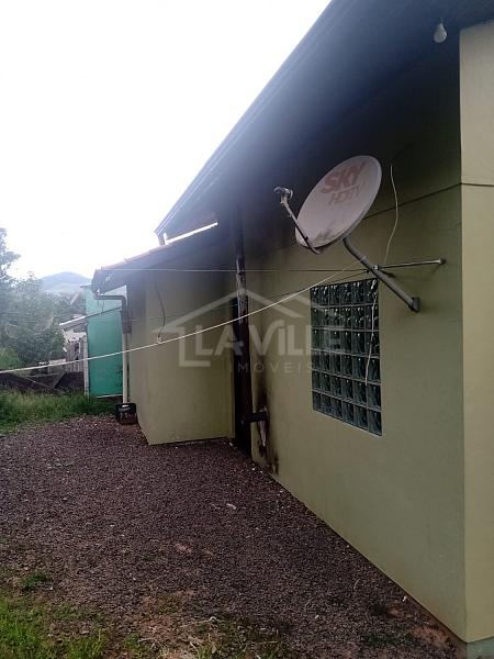 Casa com dois quartos, banheiro, sala, cozinha, área, pátio cercado e portão eletrônico.