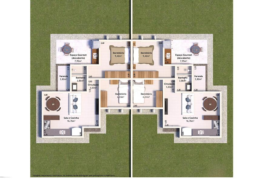 Área privativa de 46,36m²