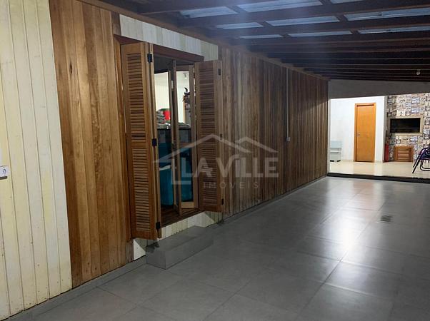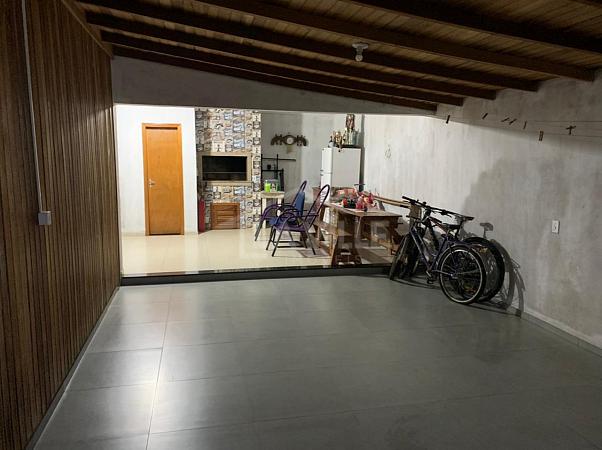 4 quartos, 3 banheiros, sala, cozinha, lavanderia, churrasqueira e garagem privativa.