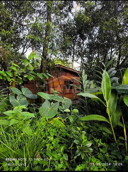 Chácara com 4 quartos (1 suíte), dois banheiros, garagem para três carros, alçapão interno e parreiral.
