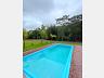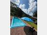 Sítio com um quarto, banheiro, sala, cozinha, área de lazer e piscina.