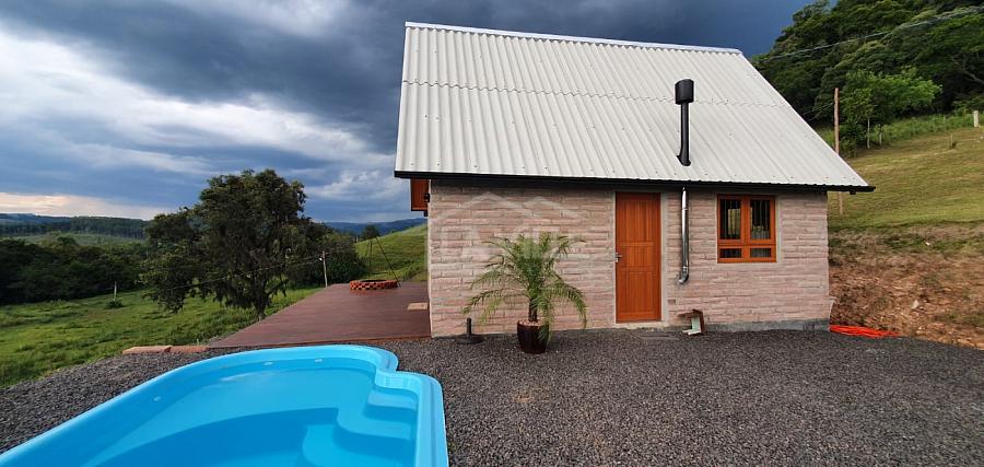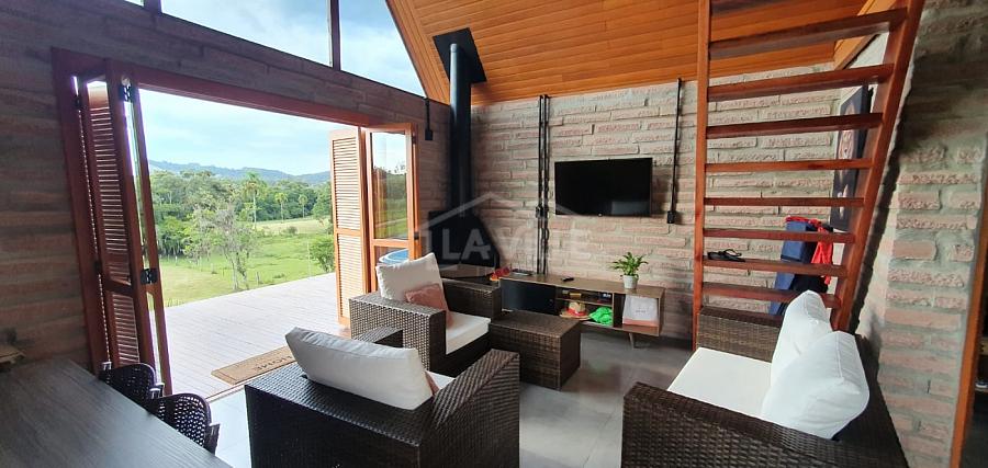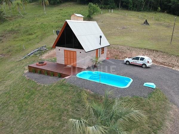 - Cabana nova com sala e cozinha integrada, lareira, churrasqueira fogo de chão, banheiro, quarto no segundo andar com ar condicionado, piscina e uma linda vista para o vale, poço artesiano, quiosque. Móveis ficam no imóvel.