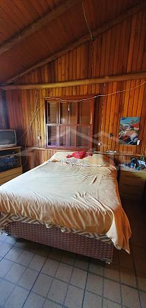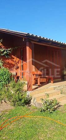 Cabana de madeira com 2 quartos, sala, banheiro e cozinha